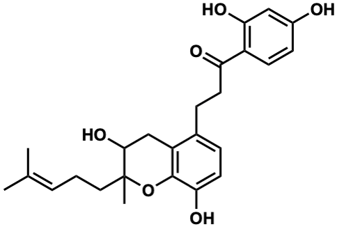 InChI=1S/C25H30O6/c1-15(2)5-4-12-25(3)23(30)14-19-16(7-11-21(28)24(19)31-25)6-10-20(27)18-9-8-17(26)13-22(18)29/h5,7-9,11,13,23,26,28-30H,4,6,10,12,14H2,1-3H3 |