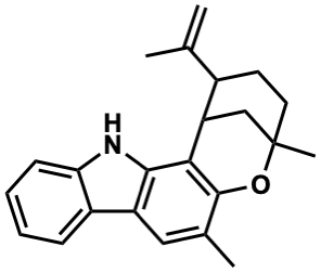 InChI=1S/C23H25NO/c1-13(2)15-9-10-23(4)12-18(15)20-21-17(11-14(3)22(20)25-23)16-7-5-6-8-19(16)24-21/h5-8,11,15,18,24H,1,9-10,12H2,2-4H3 |