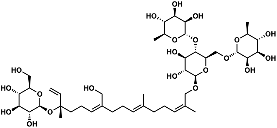 InChI=1S/C44H74O21/c1-7-44(6,65-43-37(56)33(52)30(49)26(18-46)62-43)16-10-15-25(17-45)14-9-12-21(2)11-8-13-22(3)19-58-41-38(57)34(53)39(64-42-36(55)32(51)29(48)24(5)61-42)27(63-41)20-59-40-35(54)31(50)28(47)23(4)60-40/h7,12-13,15,23-24,26-43,45-57H,1,8-11,14,16-20H2,2-6H3/b21-12+,22-13-,25-15-/t23-,24-,26+,27+,28-,29-,30+,31+,32+,33-,34+,35+,36+,37+,38+,39+,40+,41+,42-,43-,44+/m0/s1 |