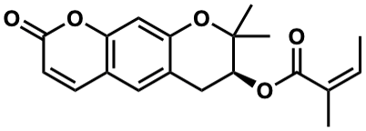 C/C=C(/C)C(=O)O[C@H]1Cc2cc3ccc(=O)oc3cc2OC1(C)C |