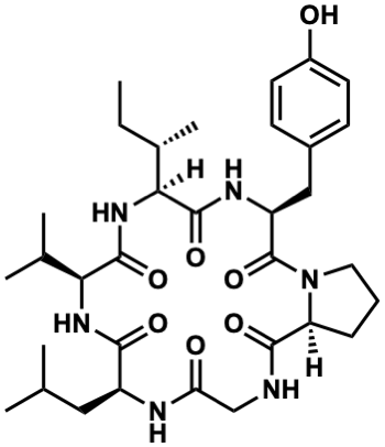 InChI=1S/C33H50N6O7/c1-7-20(6)28-32(45)36-24(16-21-10-12-22(40)13-11-21)33(46)39-14-8-9-25(39)30(43)34-17-26(41)35-23(15-18(2)3)29(42)37-27(19(4)5)31(44)38-28/h10-13,18-20,23-25,27-28,40H,7-9,14-17H2,1-6H3,(H,34,43)(H,35,41)(H,36,45)(H,37,42)(H,38,44)/t20-,23-,24-,25-,27-,28-/m0/s1 |