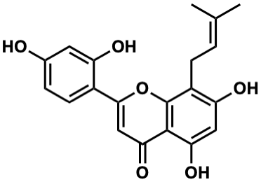 CC(C)=CCc1c(O)cc(O)c2c(=O)cc(-c3ccc(O)cc3O)oc12 |