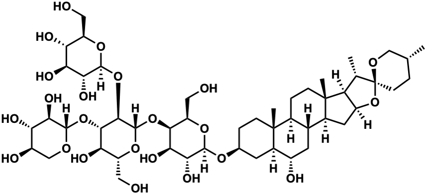 InChI=1S/C50H82O23/c1-19-5-10-50(65-17-19)20(2)32-28(73-50)13-24-22-12-26(54)25-11-21(6-8-48(25,3)23(22)7-9-49(24,32)4)66-45-40(63)37(60)41(31(16-53)69-45)70-47-43(72-46-39(62)36(59)34(57)29(14-51)67-46)42(35(58)30(15-52)68-47)71-44-38(61)33(56)27(55)18-64-44/h19-47,51-63H,5-18H2,1-4H3/t19-,20+,21+,22-,23+,24+,25-,26+,27-,28+,29-,30-,31-,32+,33+,34-,35-,36+,37-,38-,39-,40-,41+,42+,43-,44+,45-,46+,47+,48-,49+,50+/m1/s1 |