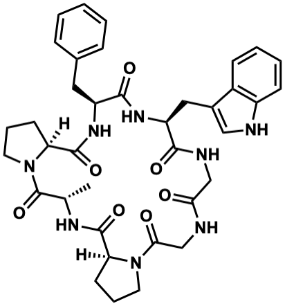 InChI=1S/C37H44N8O7/c1-22-37(52)45-16-8-14-30(45)36(51)43-27(17-23-9-3-2-4-10-23)34(49)42-28(18-24-19-38-26-12-6-5-11-25(24)26)33(48)40-20-31(46)39-21-32(47)44-15-7-13-29(44)35(50)41-22/h2-6,9-12,19,22,27-30,38H,7-8,13-18,20-21H2,1H3,(H,39,46)(H,40,48)(H,41,50)(H,42,49)(H,43,51)/t22-,27-,28-,29-,30-/m0/s1 |