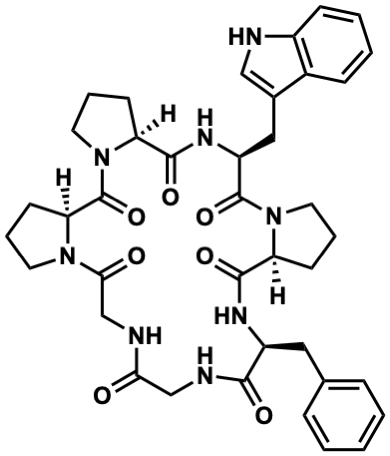 InChI=1S/C39H46N8O7/c48-33-22-42-35(50)28(19-24-9-2-1-3-10-24)43-36(51)30-13-6-17-46(30)38(53)29(20-25-21-40-27-12-5-4-11-26(25)27)44-37(52)31-14-7-18-47(31)39(54)32-15-8-16-45(32)34(49)23-41-33/h1-5,9-12,21,28-32,40H,6-8,13-20,22-23H2,(H,41,48)(H,42,50)(H,43,51)(H,44,52)/t28-,29-,30-,31-,32-/m0/s1 |