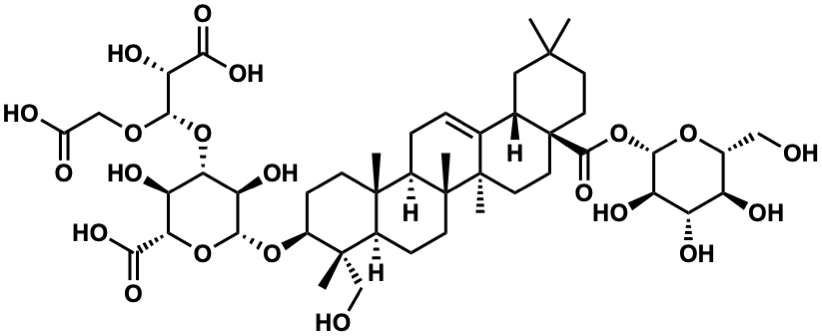 InChI=1S/C47H72O21/c1-42(2)13-15-47(41(62)68-39-30(54)29(53)28(52)23(18-48)64-39)16-14-45(5)21(22(47)17-42)7-8-25-43(3)11-10-26(44(4,20-49)24(43)9-12-46(25,45)6)65-40-32(56)34(31(55)35(67-40)37(60)61)66-38(33(57)36(58)59)63-19-27(50)51/h7,22-26,28-35,38-40,48-49,52-57H,8-20H2,1-6H3,(H,50,51)(H,58,59)(H,60,61)/t22-,23+,24+,25+,26-,28+,29-,30+,31-,32+,33+,34-,35-,38-,39-,40+,43-,44-,45+,46+,47-/m0/s1 |