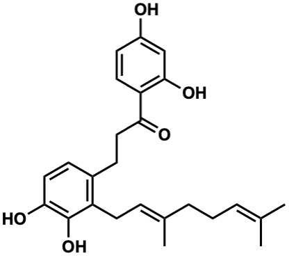 CC(C)=CCC/C(C)=C/Cc1c(CCC(=O)c2ccc(O)cc2O)ccc(O)c1O |