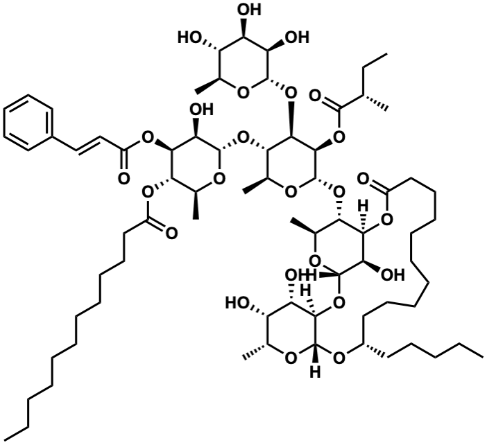 InChI=1S/C72H116O25/c1-10-13-15-16-17-18-21-24-31-37-49(73)90-59-44(7)86-69(57(81)62(59)92-51(75)40-39-47-33-28-26-29-34-47)94-61-46(9)88-72(66(93-67(83)41(4)12-3)65(61)97-68-56(80)54(78)52(76)42(5)84-68)95-60-45(8)87-70-58(82)63(60)91-50(74)38-32-25-22-19-20-23-30-36-48(35-27-14-11-2)89-71-64(96-70)55(79)53(77)43(6)85-71/h26,28-29,33-34,39-46,48,52-66,68-72,76-82H,10-25,27,30-32,35-38H2,1-9H3/b40-39+/t41-,42-,43+,44-,45-,46-,48-,52-,53-,54+,55-,56+,57+,58+,59-,60-,61-,62-,63-,64+,65+,66+,68-,69-,70-,71-,72-/m0/s1 |