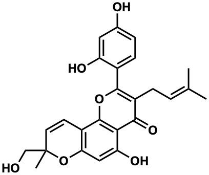 CC(C)=CCc1c(-c2ccc(O)cc2O)oc2c3c(cc(O)c2c1=O)OC(C)(CO)C=C3 |