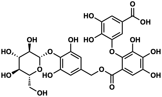 O=C(O)c1cc(O)c(O)c(Oc2c(C(=O)OCc3cc(O)c(O[C@@H]4O[C@H](CO)[C@@H](O)[C@H](O)[C@H]4O)c(O)c3)cc(O)c(O)c2O)c1 |