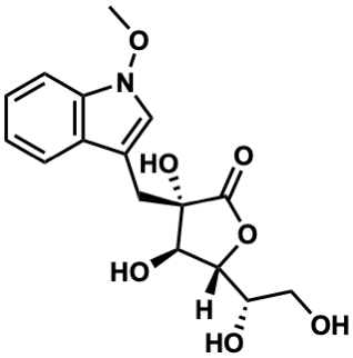 COn1cc(C[C@@]2(O)C(=O)O[C@H]([C@@H](O)CO)[C@H]2O)c2ccccc21 |