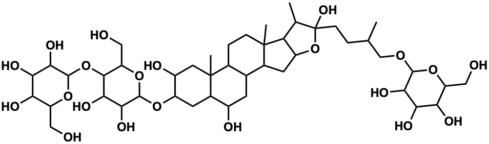 InChI=1S/C45H76O21/c1-17(16-60-40-36(56)33(53)31(51)27(13-46)62-40)5-8-45(59)18(2)30-26(66-45)10-21-19-9-23(49)22-11-25(24(50)12-44(22,4)20(19)6-7-43(21,30)3)61-41-38(58)35(55)39(29(15-48)64-41)65-42-37(57)34(54)32(52)28(14-47)63-42/h17-42,46-59H,5-16H2,1-4H3 |