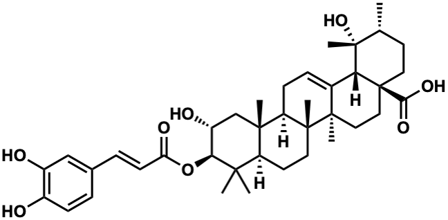 InChI=1S/C39H54O8/c1-22-14-17-39(33(44)45)19-18-36(5)24(31(39)38(22,7)46)10-12-29-35(4)21-27(42)32(34(2,3)28(35)15-16-37(29,36)6)47-30(43)13-9-23-8-11-25(40)26(41)20-23/h8-11,13,20,22,27-29,31-32,40-42,46H,12,14-19,21H2,1-7H3,(H,44,45)/b13-9+/t22-,27-,28+,29-,31-,32+,35+,36-,37-,38-,39+/m1/s1 |