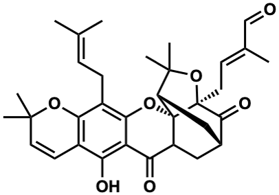 CC(C)=CCc1c2c(c(O)c3c1O[C@]14C(C[C@@H]5C[C@H]1C(C)(C)O[C@@]4(C/C=C(C)C=O)C5=O)C3=O)C=CC(C)(C)O2 |