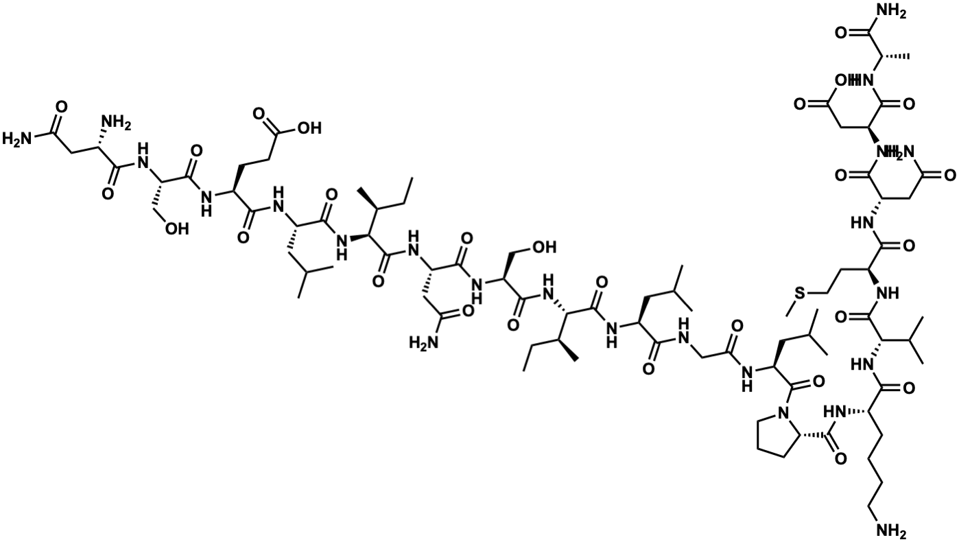 InChI=1S/C83H143N23O27S/c1-15-42(11)65(104-76(126)50(29-39(5)6)96-70(120)47(22-23-62(113)114)93-77(127)55(36-107)101-68(118)45(85)31-58(86)109)82(132)100-52(33-60(88)111)75(125)102-56(37-108)78(128)105-66(43(12)16-2)81(131)99-49(28-38(3)4)69(119)90-35-61(112)92-54(30-40(7)8)83(133)106-26-19-21-57(106)79(129)94-46(20-17-18-25-84)72(122)103-64(41(9)10)80(130)95-48(24-27-134-14)71(121)97-51(32-59(87)110)74(124)98-53(34-63(115)116)73(123)91-44(13)67(89)117/h38-57,64-66,107-108H,15-37,84-85H2,1-14H3,(H2,86,109)(H2,87,110)(H2,88,111)(H2,89,117)(H,90,119)(H,91,123)(H,92,112)(H,93,127)(H,94,129)(H,95,130)(H,96,120)(H,97,121)(H,98,124)(H,99,131)(H,100,132)(H,101,118)(H,102,125)(H,103,122)(H,104,126)(H,105,128)(H,113,114)(H,115,116)/t42-,43-,44-,45-,46-,47-,48-,49-,50-,51-,52-,53-,54-,55-,56-,57-,64-,65-,66-/m0/s1 |