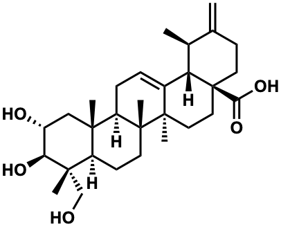 InChI=1S/C30H46O5/c1-17-9-12-30(25(34)35)14-13-28(5)19(23(30)18(17)2)7-8-22-26(3)15-20(32)24(33)27(4,16-31)21(26)10-11-29(22,28)6/h7,18,20-24,31-33H,1,8-16H2,2-6H3,(H,34,35)/t18-,20+,21+,22+,23-,24-,26-,27-,28+,29+,30-/m0/s1 |