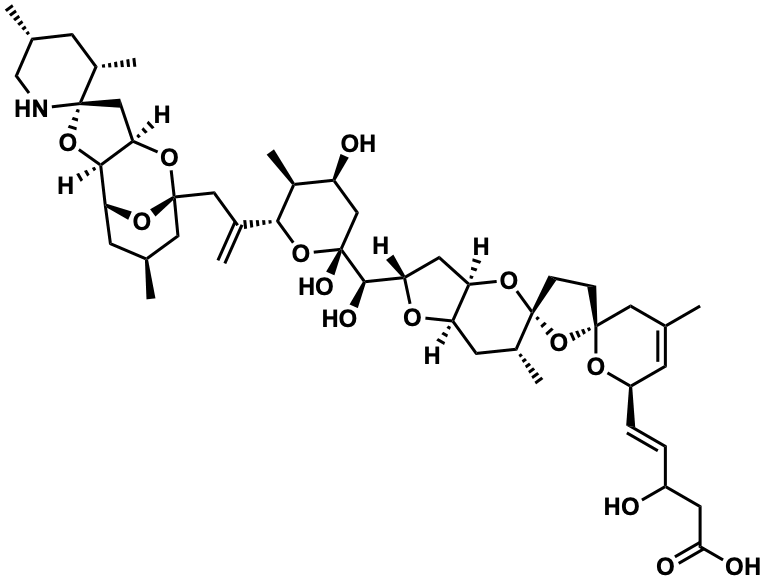 InChI=1S/C47H71NO14/c1-24-13-32(9-8-31(49)16-39(51)52)56-43(18-24)10-11-47(62-43)29(6)15-34-35(59-47)17-37(55-34)42(53)46(54)21-33(50)30(7)40(61-46)27(4)20-44-19-25(2)14-36(57-44)41-38(58-44)22-45(60-41)28(5)12-26(3)23-48-45/h8-9,13,25-26,28-38,40-42,48-50,53-54H,4,10-12,14-23H2,1-3,5-7H3,(H,51,52)/b9-8+/t25-,26+,28-,29+,30-,31?,32+,33-,34+,35+,36+,37-,38+,40+,41+,42+,43+,44-,45-,46+,47+/m0/s1 |