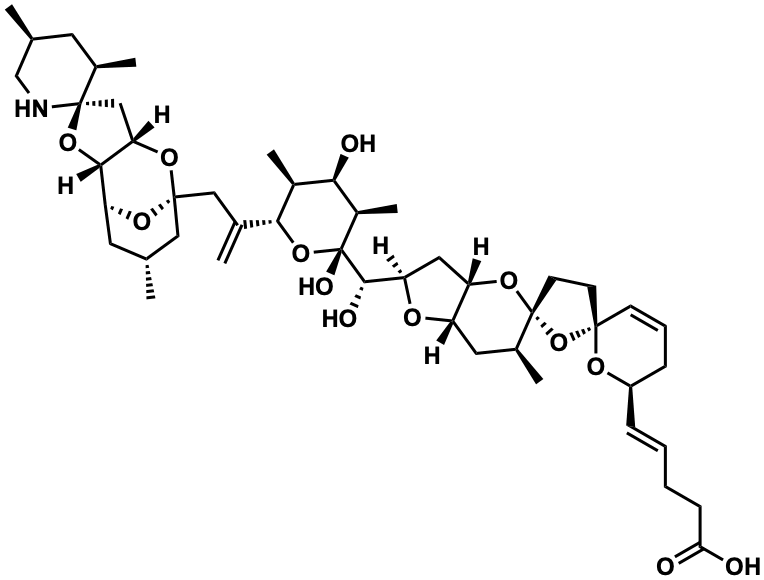 InChI=1S/C47H71NO13/c1-25-18-35-41-37(23-45(59-41)28(4)17-26(2)24-48-45)57-44(21-25,56-35)22-27(3)40-30(6)39(51)31(7)47(53,60-40)42(52)36-20-34-33(54-36)19-29(5)46(58-34)16-15-43(61-46)14-10-12-32(55-43)11-8-9-13-38(49)50/h8,10-11,14,25-26,28-37,39-42,48,51-53H,3,9,12-13,15-24H2,1-2,4-7H3,(H,49,50)/b11-8+/t25-,26+,28-,29+,30+,31-,32-,33+,34+,35+,36-,37+,39-,40-,41+,42+,43+,44-,45-,46-,47-/m1/s1 |