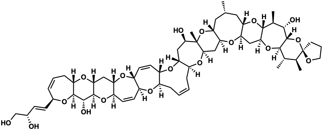 InChI=1S/C60H86O18/c1-29-22-42-44(25-48-54(75-42)31(3)52(64)58-55(76-48)30(2)32(4)60(78-58)20-9-21-66-60)72-46-27-51-59(5,77-47(46)23-29)50(63)26-45-36(73-51)12-7-6-11-35-37(70-45)16-17-39-38(68-35)18-19-40-43(69-39)24-49-57(74-40)53(65)56-41(71-49)13-8-10-34(67-56)15-14-33(62)28-61/h6-8,10,14-19,29-58,61-65H,9,11-13,20-28H2,1-5H3/b7-6-,15-14+/t29-,30+,31+,32+,33+,34-,35-,36+,37+,38+,39-,40-,41+,42+,43+,44-,45-,46+,47-,48+,49-,50-,51-,52+,53-,54-,55-,56+,57-,58+,59+,60-/m1/s1 |