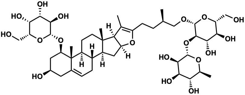 InChI=1S/C45H72O18/c1-18(17-57-43-40(37(54)34(51)29(16-47)61-43)63-41-38(55)35(52)32(49)20(3)58-41)6-9-26-19(2)31-27(59-26)14-25-23-8-7-21-12-22(48)13-30(45(21,5)24(23)10-11-44(25,31)4)62-42-39(56)36(53)33(50)28(15-46)60-42/h7,18,20,22-25,27-43,46-56H,6,8-17H2,1-5H3/t18-,20+,22-,23-,24+,25+,27+,28-,29-,30-,31+,32+,33+,34-,35-,36+,37+,38-,39-,40-,41+,42+,43-,44+,45+/m1/s1 |