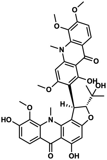 InChI=1S/C37H36N2O11/c1-37(2,45)36-27(25-22(50-36)14-19(41)24-30(25)39(4)28-15(32(24)43)9-11-18(40)34(28)48-7)26-21(47-6)13-17-23(33(26)44)31(42)16-10-12-20(46-5)35(49-8)29(16)38(17)3/h9-14,27,36,40-41,44-45H,1-8H3/t27-,36+/m0/s1 |