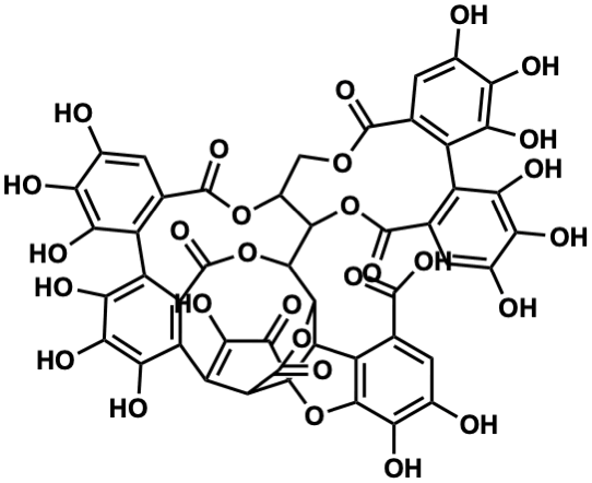 InChI=1S/C47H28O29/c48-10-2-7-15(29(56)25(10)52)16-8(3-11(49)26(53)30(16)57)44(68)73-36-14(5-71-42(7)66)72-43(67)9-4-12(50)27(54)31(58)17(9)19-21-20(33(60)35(62)32(19)59)22-24-46(70)74-38(39(36)75-45(21)69)23-18-6(41(64)65)1-13(51)28(55)37(18)76-47(23,24)40(63)34(22)61/h1-4,14,23-24,36,38-39,48-62H,5H2,(H,64,65) |