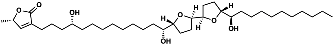 InChI=1S/C37H66O7/c1-3-4-5-6-7-8-12-15-21-31(39)33-23-25-35(43-33)36-26-24-34(44-36)32(40)22-16-13-10-9-11-14-19-30(38)20-17-18-29-27-28(2)42-37(29)41/h27-28,30-36,38-40H,3-26H2,1-2H3/t28-,30+,31+,32+,33+,34+,35+,36+/m0/s1 |