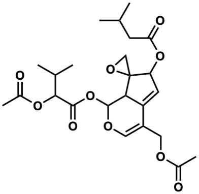 InChI=1S/C24H32O10/c1-12(2)7-19(27)33-18-8-17-16(9-29-14(5)25)10-30-23(20(17)24(18)11-31-24)34-22(28)21(13(3)4)32-15(6)26/h8,10,12-13,18,20-21,23H,7,9,11H2,1-6H3 |