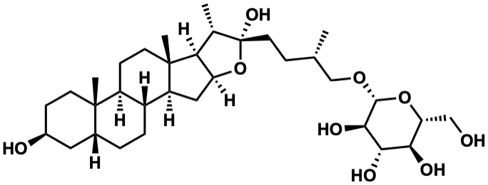 InChI=1S/C33H56O9/c1-17(16-40-30-29(38)28(37)27(36)25(15-34)41-30)7-12-33(39)18(2)26-24(42-33)14-23-21-6-5-19-13-20(35)8-10-31(19,3)22(21)9-11-32(23,26)4/h17-30,34-39H,5-16H2,1-4H3/t17-,18-,19+,20-,21+,22-,23-,24-,25+,26-,27+,28-,29+,30+,31-,32-,33+/m0/s1 |