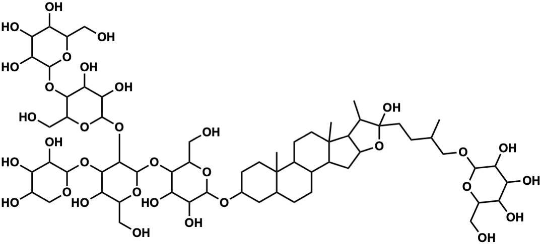 InChI=1S/C62H104O33/c1-22(20-83-54-46(78)41(73)38(70)31(15-63)86-54)7-12-62(82)23(2)36-30(95-62)14-28-26-6-5-24-13-25(8-10-60(24,3)27(26)9-11-61(28,36)4)85-56-48(80)43(75)51(35(19-67)89-56)92-59-53(52(40(72)33(17-65)88-59)93-55-45(77)37(69)29(68)21-84-55)94-58-49(81)44(76)50(34(18-66)90-58)91-57-47(79)42(74)39(71)32(16-64)87-57/h22-59,63-82H,5-21H2,1-4H3 |