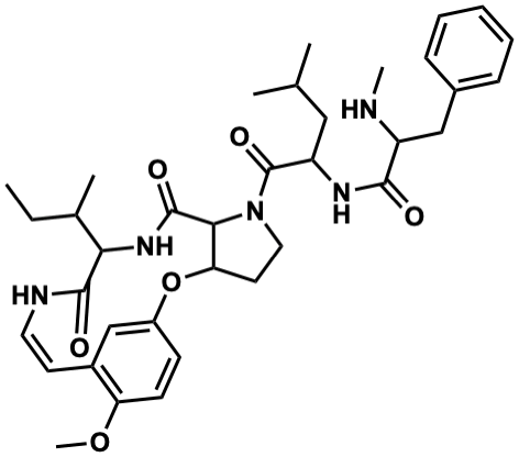 InChI=1S/C36H49N5O6/c1-7-23(4)31-34(43)38-17-15-25-21-26(13-14-29(25)46-6)47-30-16-18-41(32(30)35(44)40-31)36(45)28(19-22(2)3)39-33(42)27(37-5)20-24-11-9-8-10-12-24/h8-15,17,21-23,27-28,30-32,37H,7,16,18-20H2,1-6H3,(H,38,43)(H,39,42)(H,40,44)/b17-15- |