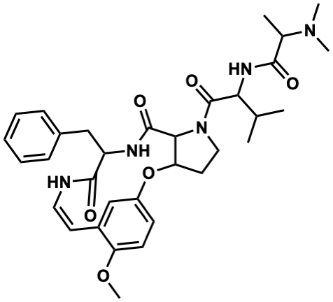 InChI=1S/C33H43N5O6/c1-20(2)28(36-30(39)21(3)37(4)5)33(42)38-17-15-27-29(38)32(41)35-25(18-22-10-8-7-9-11-22)31(40)34-16-14-23-19-24(44-27)12-13-26(23)43-6/h7-14,16,19-21,25,27-29H,15,17-18H2,1-6H3,(H,34,40)(H,35,41)(H,36,39)/b16-14- |