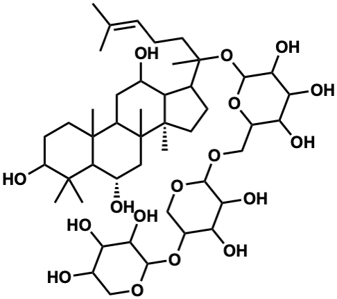 InChI=1S/C46H78O17/c1-21(2)10-9-13-46(8,22-11-15-44(6)30(22)23(47)16-28-43(5)14-12-29(50)42(3,4)38(43)24(48)17-45(28,44)7)63-41-37(57)34(54)32(52)26(62-41)19-59-39-36(56)33(53)27(20-60-39)61-40-35(55)31(51)25(49)18-58-40/h10,22-41,47-57H,9,11-20H2,1-8H3/t22?,23?,24-,25?,26?,27?,28?,29?,30?,31?,32?,33?,34?,35?,36?,37?,38?,39?,40?,41?,43?,44+,45?,46?/m0/s1 |