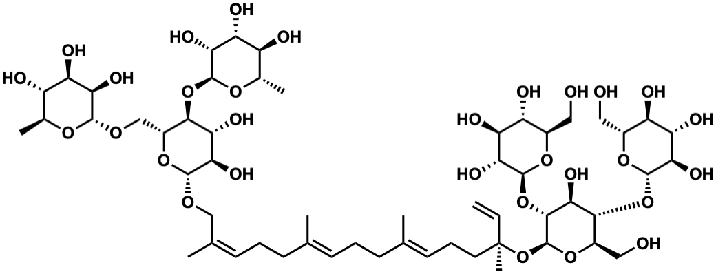 InChI=1S/C56H94O30/c1-8-56(7,86-55-49(85-54-44(72)39(67)35(63)29(19-58)80-54)46(74)47(30(20-59)81-55)83-53-43(71)38(66)34(62)28(18-57)79-53)17-11-16-24(3)13-9-12-23(2)14-10-15-25(4)21-75-51-45(73)40(68)48(84-52-42(70)37(65)33(61)27(6)78-52)31(82-51)22-76-50-41(69)36(64)32(60)26(5)77-50/h8,12,15-16,26-55,57-74H,1,9-11,13-14,17-22H2,2-7H3/b23-12+,24-16+,25-15-/t26-,27-,28+,29+,30+,31+,32-,33-,34+,35+,36+,37+,38-,39-,40+,41+,42+,43+,44+,45+,46-,47+,48+,49+,50+,51+,52-,53-,54-,55-,56+/m0/s1 |