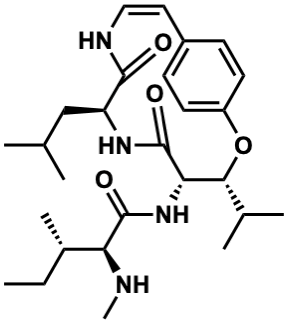 CC[C@H](C)[C@H](NC)C(=O)N[C@@H]1C(=O)N[C@@H](CC(C)C)C(=O)N/C=Cc2ccc(cc2)O[C@@H]1C(C)C |