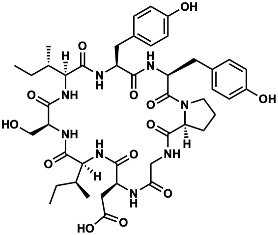 InChI=1S/C44H60N8O13/c1-5-23(3)36-42(63)47-29(18-25-9-13-27(54)14-10-25)38(59)48-31(19-26-11-15-28(55)16-12-26)44(65)52-17-7-8-33(52)41(62)45-21-34(56)46-30(20-35(57)58)39(60)50-37(24(4)6-2)43(64)49-32(22-53)40(61)51-36/h9-16,23-24,29-33,36-37,53-55H,5-8,17-22H2,1-4H3,(H,45,62)(H,46,56)(H,47,63)(H,48,59)(H,49,64)(H,50,60)(H,51,61)(H,57,58)/t23-,24-,29-,30-,31-,32-,33-,36-,37-/m0/s1 |