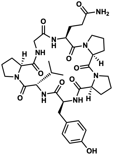 InChI=1S/C36H50N8O9/c1-20(2)30-36(53)43-16-3-6-25(43)32(49)38-19-29(47)39-23(13-14-28(37)46)34(51)44-17-5-8-27(44)35(52)42-15-4-7-26(42)33(50)40-24(31(48)41-30)18-21-9-11-22(45)12-10-21/h9-12,20,23-27,30,45H,3-8,13-19H2,1-2H3,(H2,37,46)(H,38,49)(H,39,47)(H,40,50)(H,41,48)/t23-,24-,25-,26-,27-,30-/m0/s1 |