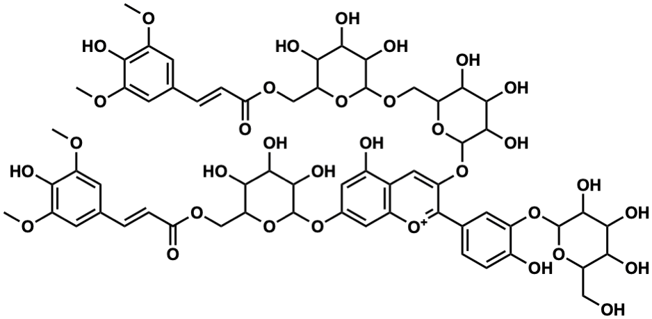 InChI=1S/C61H70O34/c1-81-32-11-23(12-33(82-2)43(32)67)5-9-41(65)85-20-38-46(70)50(74)53(77)58(93-38)87-22-40-48(72)52(76)56(80)61(95-40)91-36-18-27-29(64)16-26(17-30(27)89-57(36)25-7-8-28(63)31(15-25)90-60-55(79)49(73)45(69)37(19-62)92-60)88-59-54(78)51(75)47(71)39(94-59)21-86-42(66)10-6-24-13-34(83-3)44(68)35(14-24)84-4/h5-18,37-40,45-56,58-62,69-80H,19-22H2,1-4H3,(H3-,63,64,65,66,67,68)/p+1 |