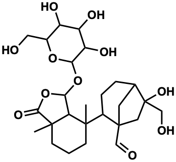 InChI=1S/C26H40O11/c1-23(15-5-4-13-8-25(15,11-28)10-26(13,34)12-29)6-3-7-24(2)19(23)21(37-22(24)33)36-20-18(32)17(31)16(30)14(9-27)35-20/h11,13-21,27,29-32,34H,3-10,12H2,1-2H3 |