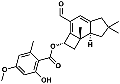 COc1cc(C)c(C(=O)O[C@H]2C[C@]3(C)C2=C(C=O)C=C2CC(C)(C)C[C@H]23)c(O)c1 |