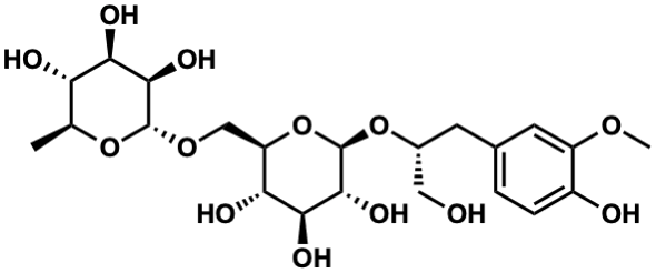 InChI=1S/C22H34O13/c1-9-15(25)17(27)19(29)21(33-9)32-8-14-16(26)18(28)20(30)22(35-14)34-11(7-23)5-10-3-4-12(24)13(6-10)31-2/h3-4,6,9,11,14-30H,5,7-8H2,1-2H3/t9-,11+,14+,15-,16+,17+,18-,19+,20+,21+,22+/m0/s1 |