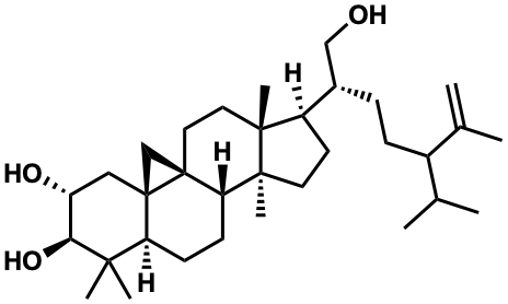 InChI=1S/C33H56O3/c1-20(2)23(21(3)4)10-9-22(18-34)24-13-14-31(8)27-12-11-26-29(5,6)28(36)25(35)17-33(26)19-32(27,33)16-15-30(24,31)7/h21-28,34-36H,1,9-19H2,2-8H3/t22-,23?,24+,25+,26-,27-,28-,30+,31-,32-,33+/m0/s1 |
