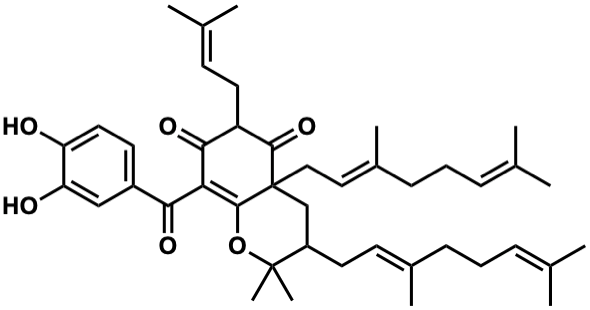 CC(C)=CCC/C(C)=C/CC1CC2(C/C=C(C)CCC=C(C)C)C(=O)C(CC=C(C)C)C(=O)C(C(=O)c3ccc(O)c(O)c3)=C2OC1(C)C |