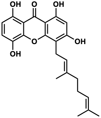 CC(C)=CCC/C(C)=C/Cc1c(O)cc(O)c2c(=O)c3c(O)ccc(O)c3oc12 |