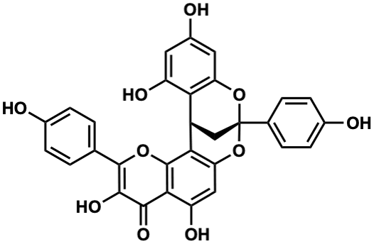 InChI=1S/C30H20O10/c31-15-5-1-13(2-6-15)28-27(37)26(36)25-20(35)11-22-24(29(25)38-28)18-12-30(40-22,14-3-7-16(32)8-4-14)39-21-10-17(33)9-19(34)23(18)21/h1-11,18,31-35,37H,12H2/t18-,30-/m0/s1 |