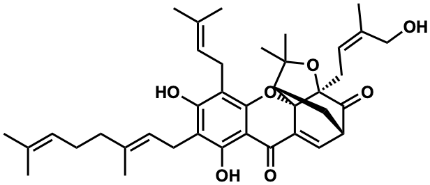 CC(C)=CCC/C(C)=C/Cc1c(O)c(CC=C(C)C)c2c(c1O)C(=O)C1=C[C@@H]3C[C@H]4C(C)(C)O[C@@](C/C=C(/C)CO)(C3=O)[C@@]14O2 |