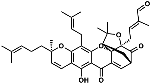 CC(C)=CCC[C@]1(C)C=Cc2c(O)c3c(c(CC=C(C)C)c2O1)O[C@]12C(=C[C@@H]4C[C@H]1C(C)(C)O[C@@]2(C/C=C(C)C=O)C4=O)C3=O |