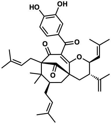 C=C(C)[C@@H]1C[C@]23C[C@@H](CC=C(C)C)C(C)(C)[C@](CC=C(C)C)(C(=O)C(C(=O)c4ccc(O)c(O)c4)=C2O[C@H]1C=C(C)C)C3=O |