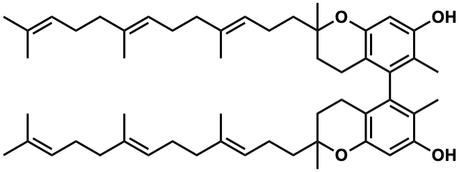 InChI=1S/C54H78O4/c1-37(2)19-13-21-39(5)23-15-25-41(7)27-17-31-53(11)33-29-45-49(57-53)35-47(55)43(9)51(45)52-44(10)48(56)36-50-46(52)30-34-54(12,58-50)32-18-28-42(8)26-16-24-40(6)22-14-20-38(3)4/h19-20,23-24,27-28,35-36,55-56H,13-18,21-22,25-26,29-34H2,1-12H3/b39-23+,40-24+,41-27+,42-28+ |