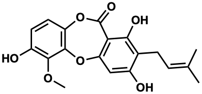 COc1c(O)ccc2c1Oc1cc(O)c(CC=C(C)C)c(O)c1C(=O)O2 |